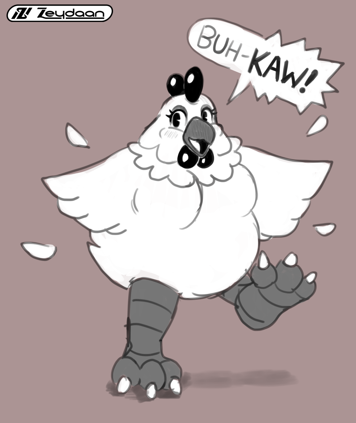 Nocty fully transformed into a cluckin' adorable Toon Chicken.