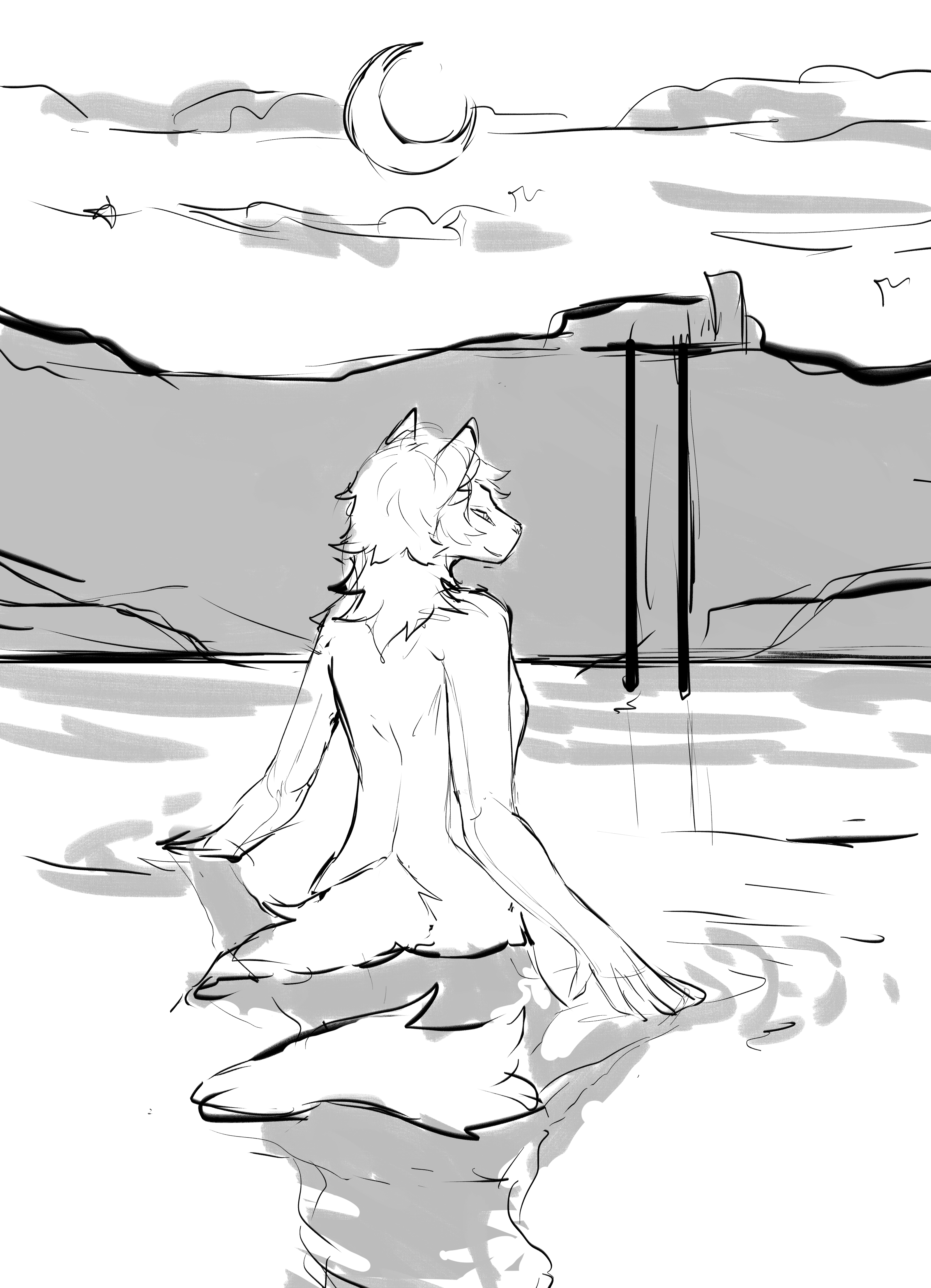 Zeydaan taking a short midnight swim at the base of cliffside barracks.