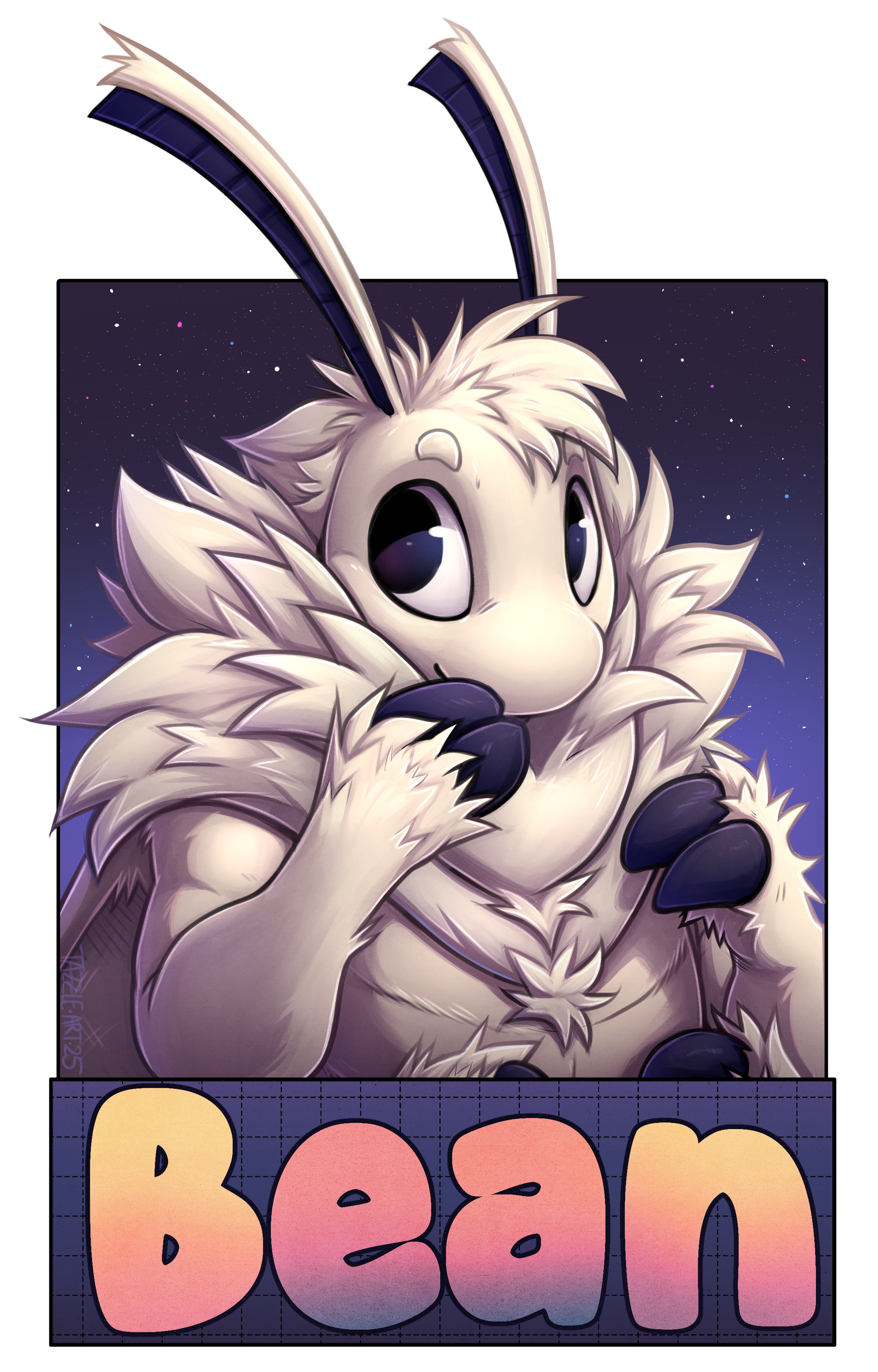 Fursuit badge of Bean (to be printed smol and worn by a plushie (at the time of posting)).