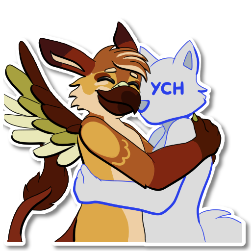 Noah the Gryphon giving a warm, feathery hug to a YCH.