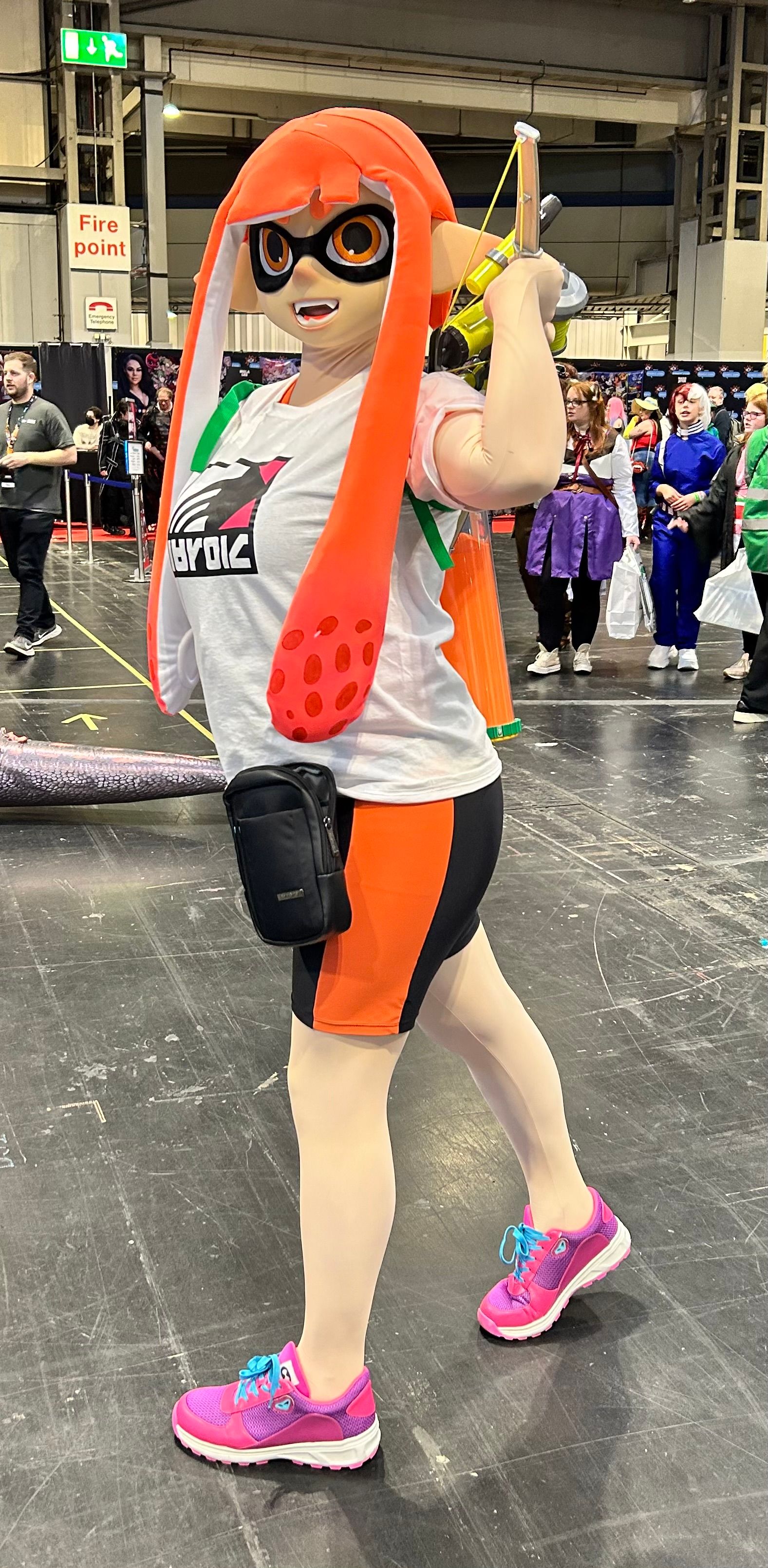 The Inku the inkling cosplay fully realised, alongside game accurate shoes and props.