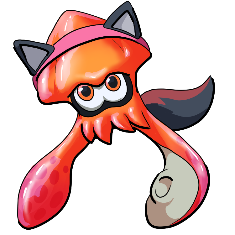 Inku wearing a suspiciously familiarly coloured fursuit while in her swimming/squid form.