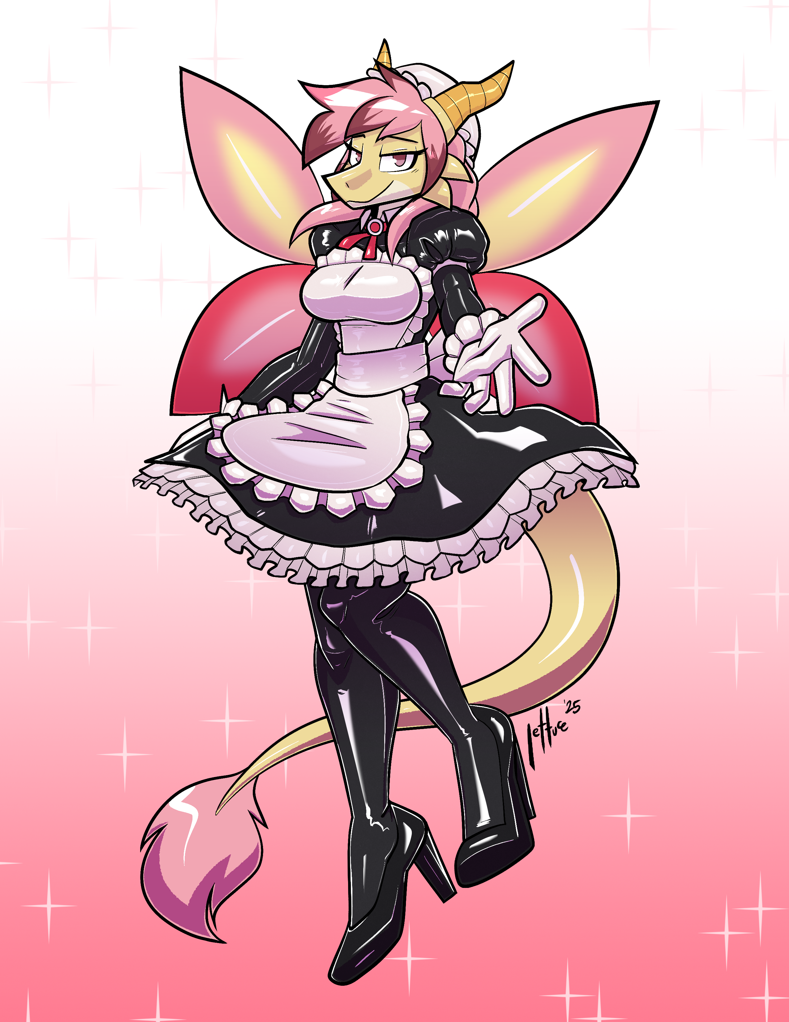 Isabella in a shiny version of her menagerie uniform, offering her hand. Won't you take a poor sinner's hand?