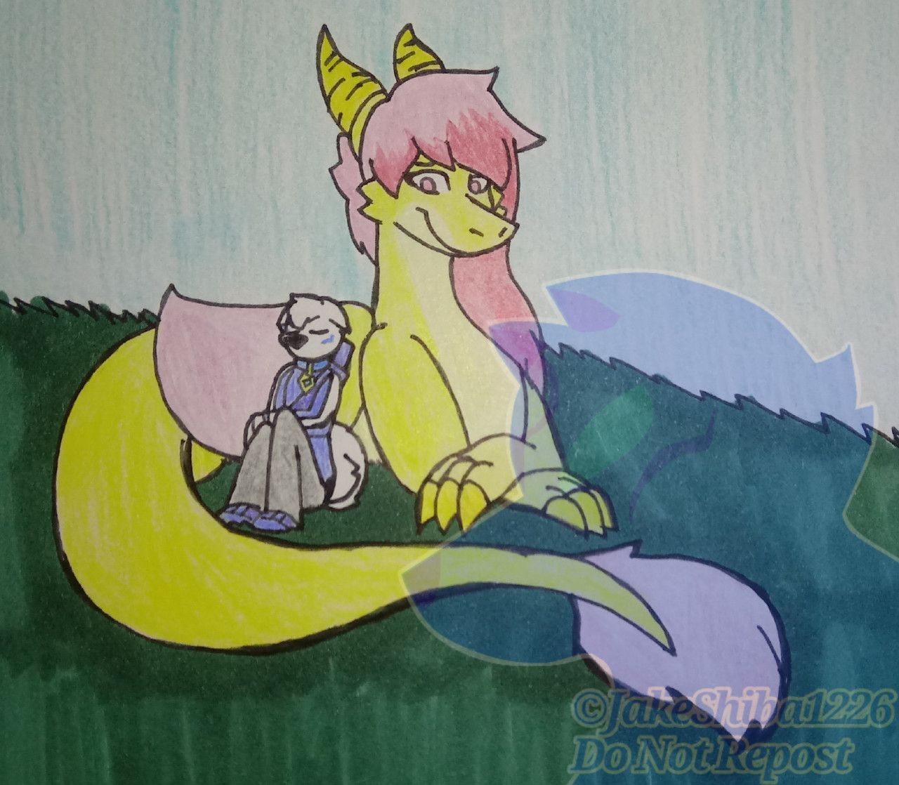 Jake having a rest on a larger feral dragon version of Isabella.