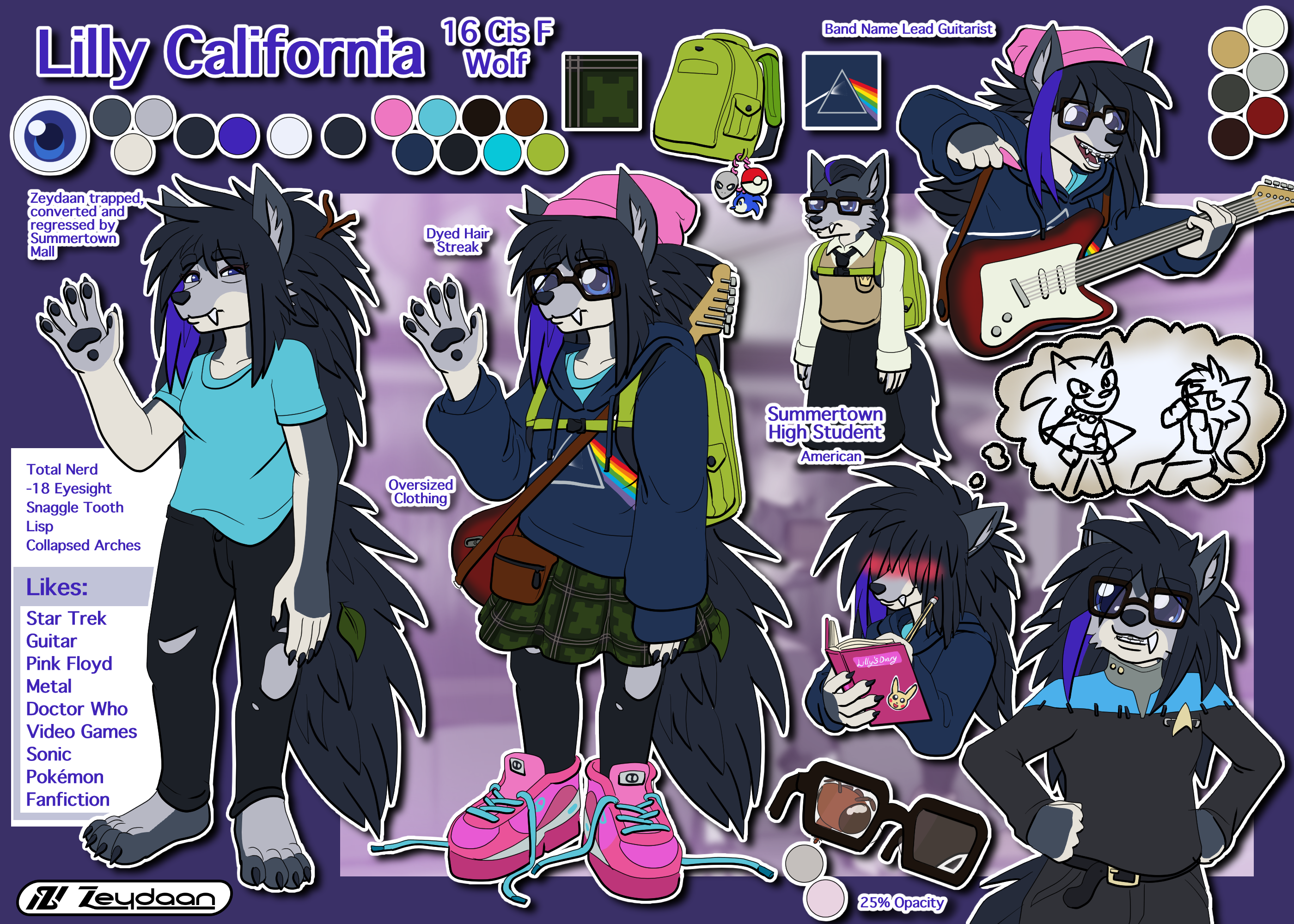 She bonds well with Lucy due to her burgeoning crush on the fox, and Rowe through their joint love of video games and Sonic the Hedgehog. She is a card-carrying Trekkie, having watched deep space nine 5 times through by now. Famously doing the entirety of the ‘In the pale moonlight’ monologue for the Summertown High talent show, much to the disapproval of her parents, who though she would be recounting a Snakespearean sonnet.