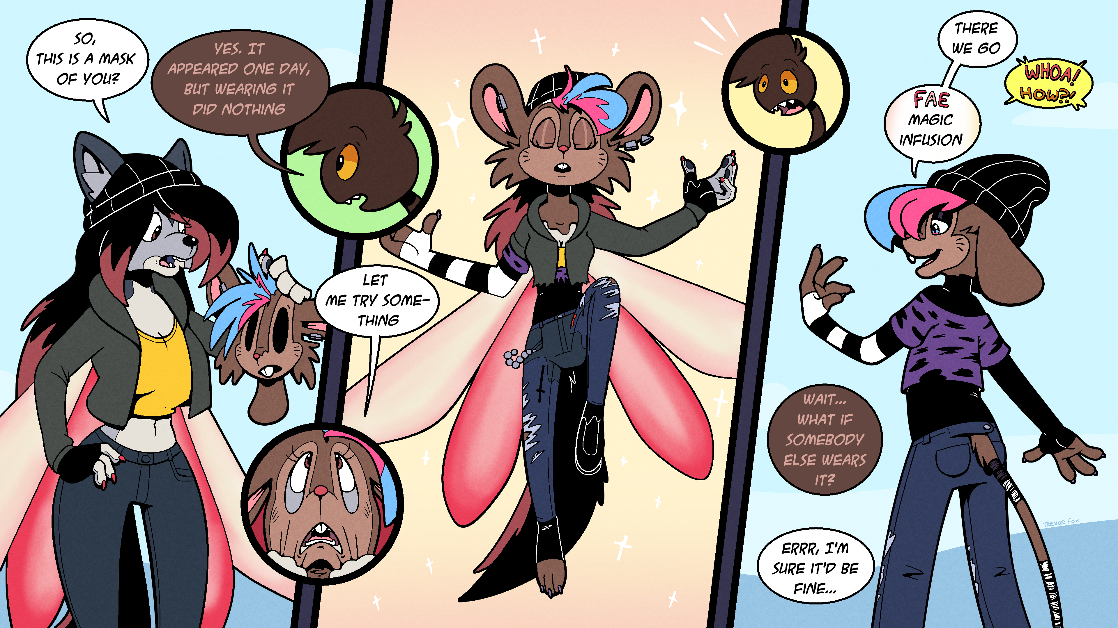 A seeming origin for all of these magic masks going around and twinning people. Kyp's impressed with the results, though may need to be careful what they wish for.