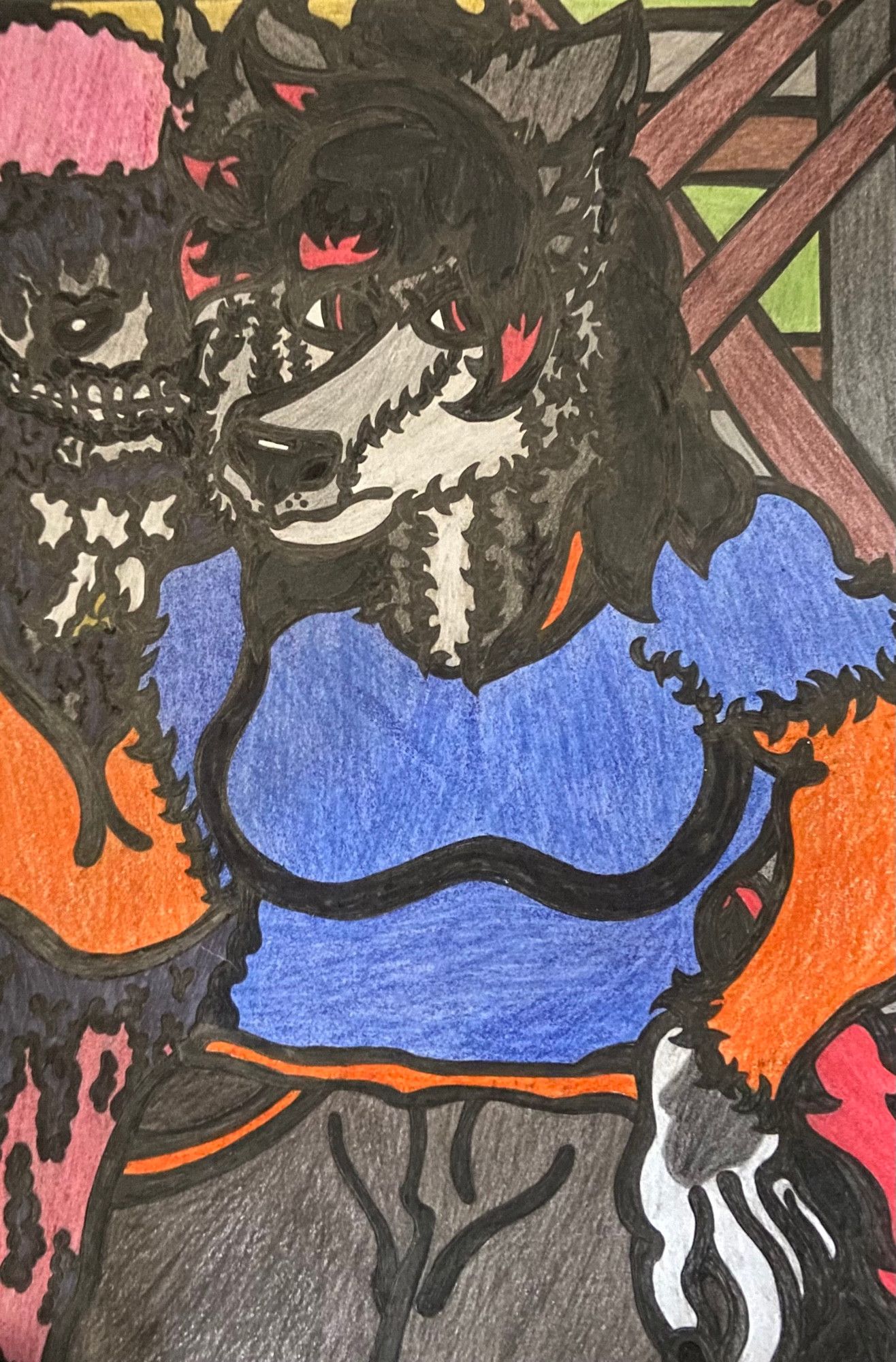 A free hand drawing of Zeydaan in inkling theme outfit and mimsy as the bendy. The drawing inspired by the creepy levels and concept art in different games franchises.
