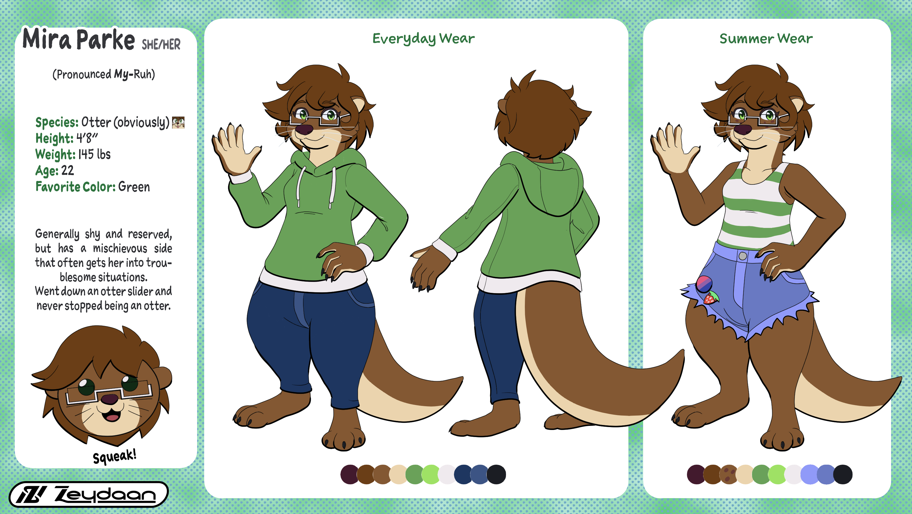 A Full Reference sheet of Mira in their new Cute Otterfied Form.