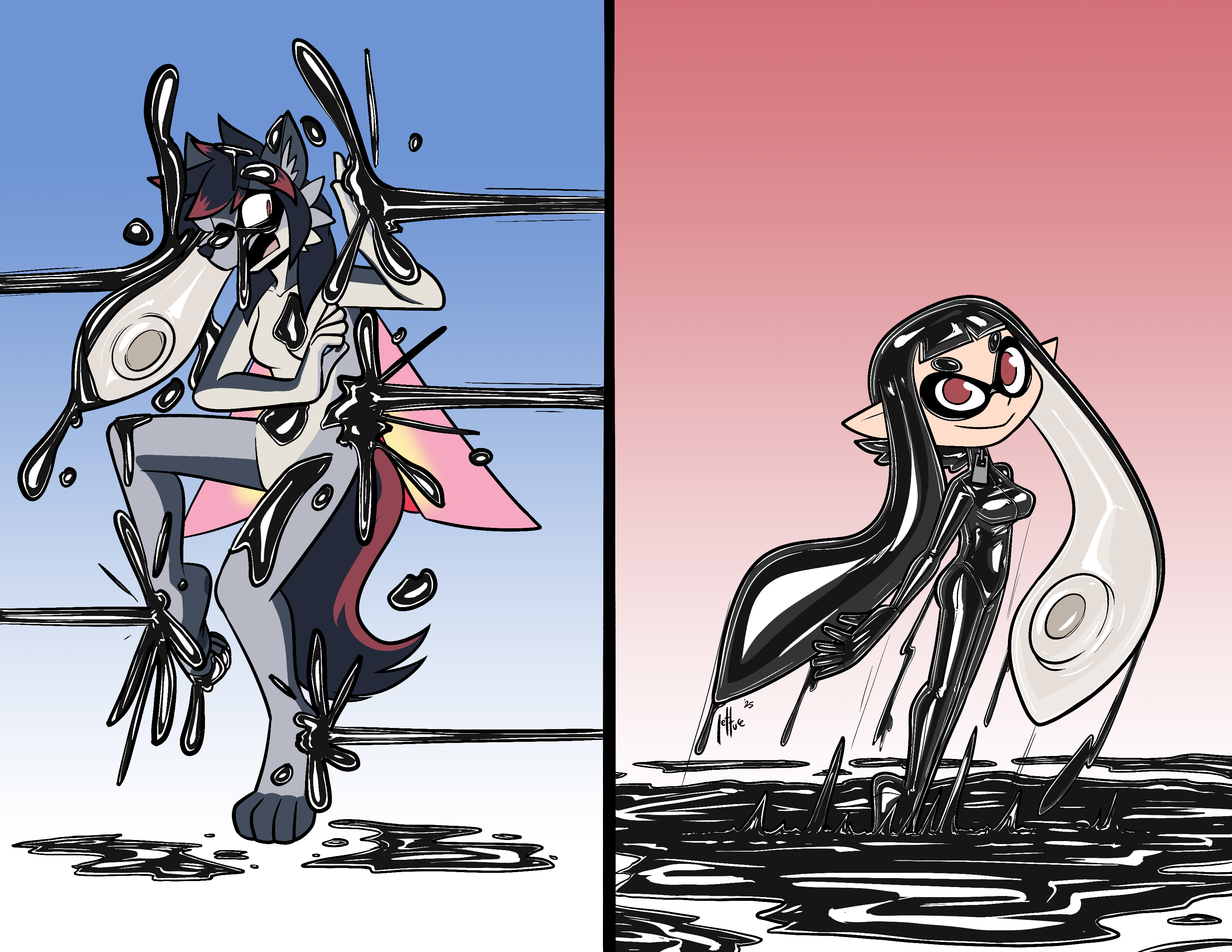 Zeydaan finding out why black ink isn't usually used in turf wars, nor why furries shouldn't really wander into the middle of an active turf war.