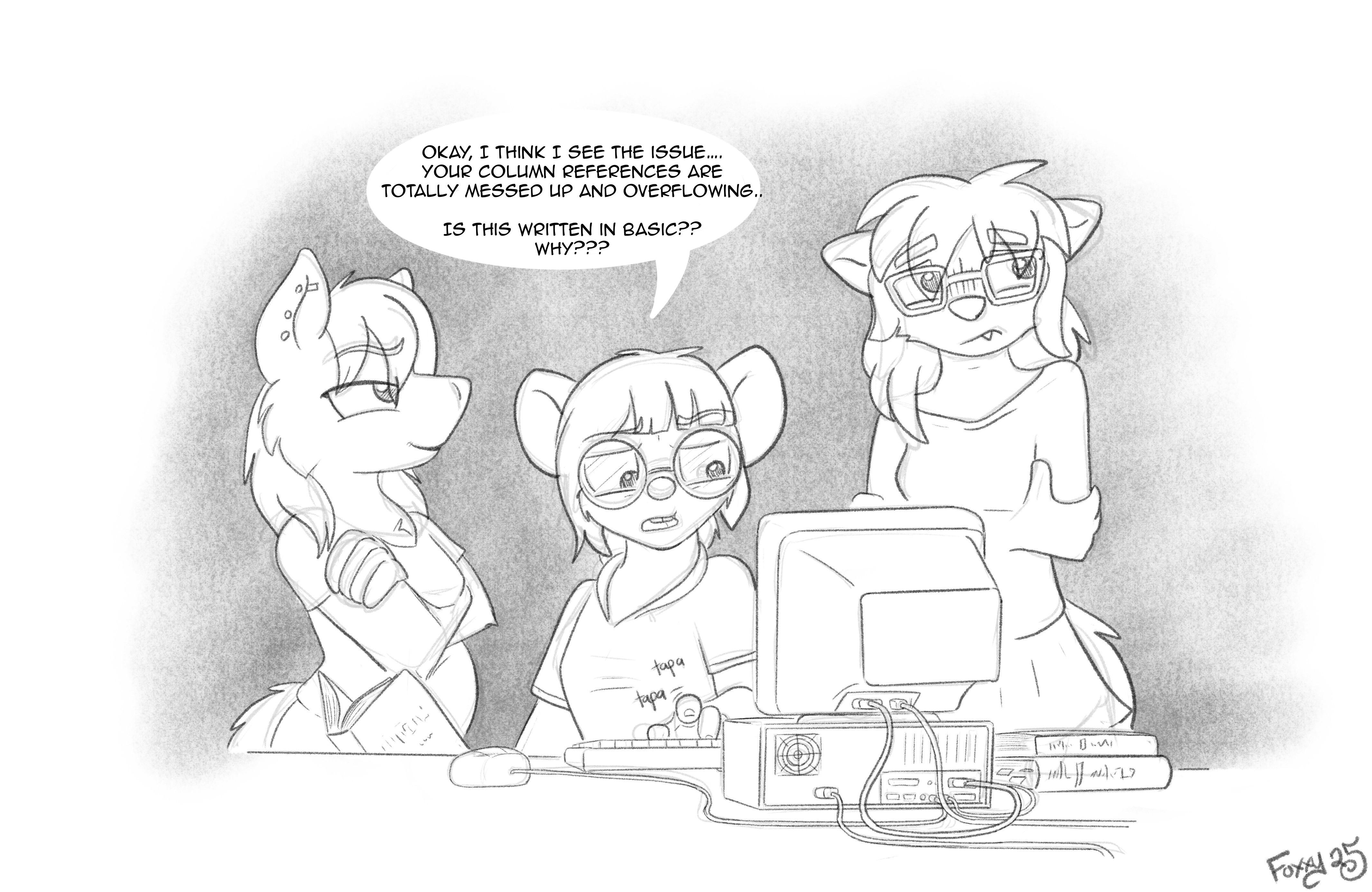 Lilly decided to have a go at coding her Star Trek fansite herself, and very much declared herself 'the best coder in town' to Lucy's annoyance. One casual glance at the absolute monster of a code by Amy would quickly put the dorky wolf in her place. Lucy, of course, doesn't have much skin in either game, but it's fun to see an absolute travesty of a website.