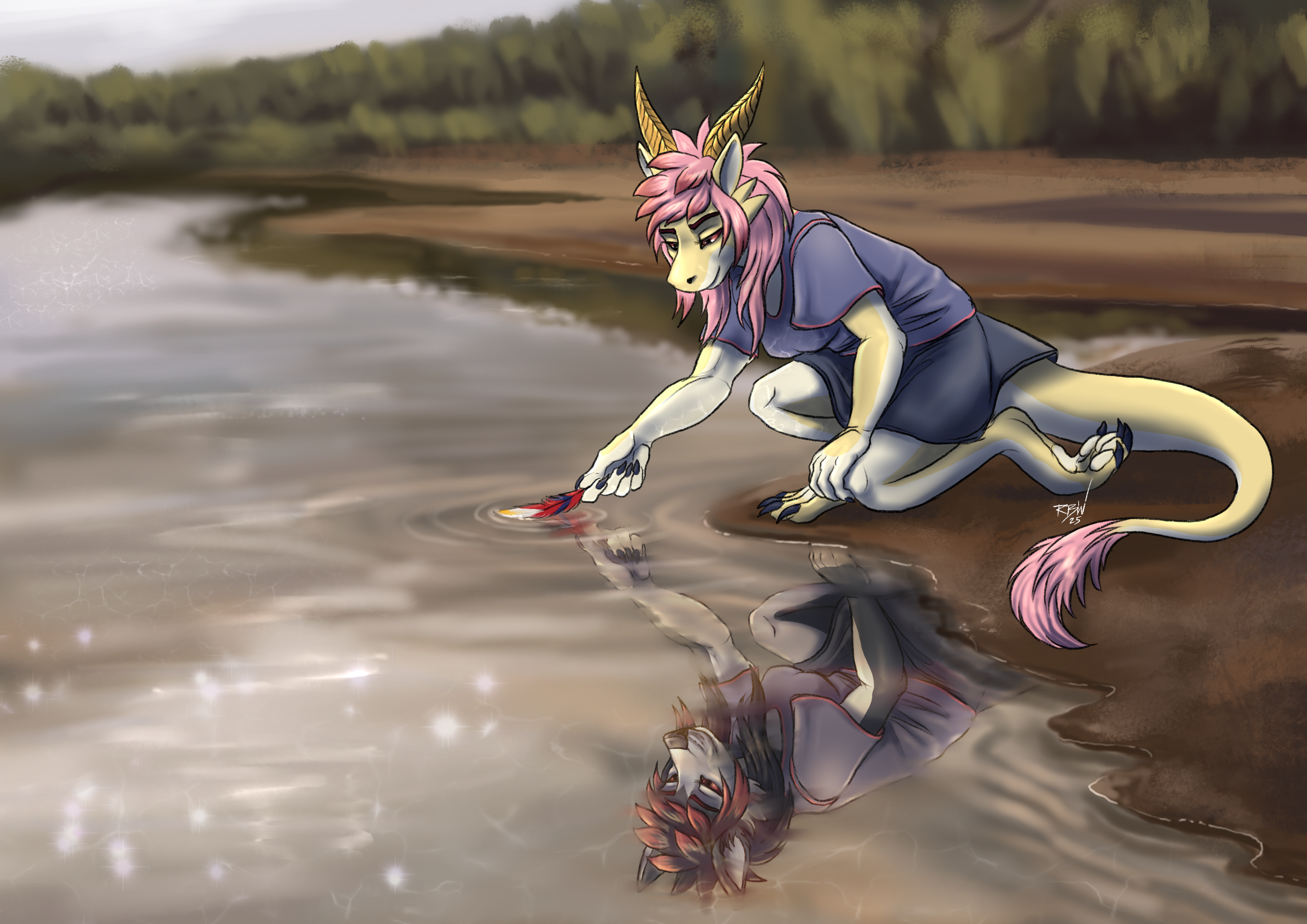 Based on the songs "The Greatest Show on Earth" by Nightwish, Isabella laying a feather down in a forest clearing. While others would see a difference in the mirror, she only sees herself.