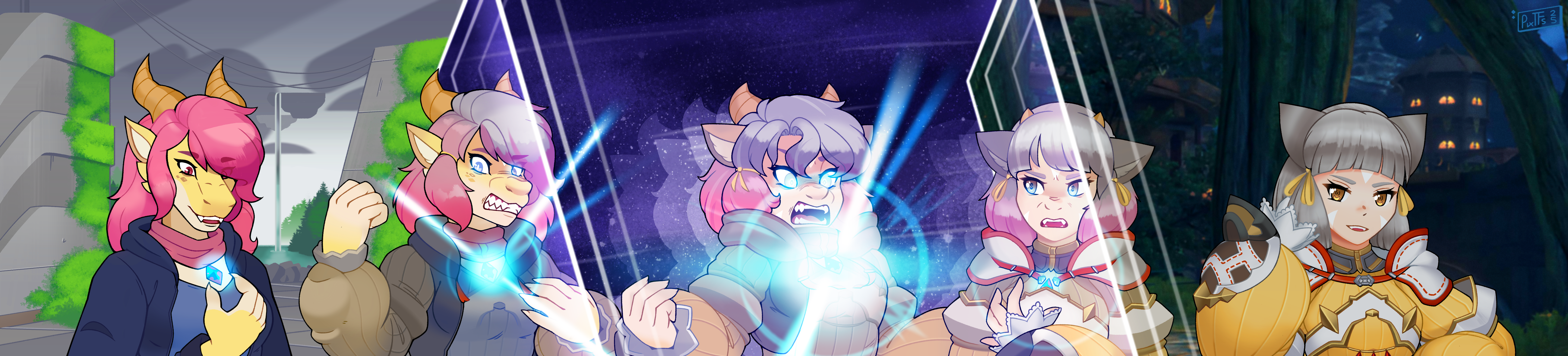Magic has a tendency of reacting in unexpected ways, especially when paired against other sources of magic. Now let's say, for example, you're a shapeshifting dragoness who has been overusing a crystal from another dimension? Well, for this shapeshifting dragoness, it's more of a minor inconvenience than the end of the world...it helps that she got the crystal from a feisty catgirl in the first place, and she's REALLY fond of twinning into her so it's not the WORST situation...