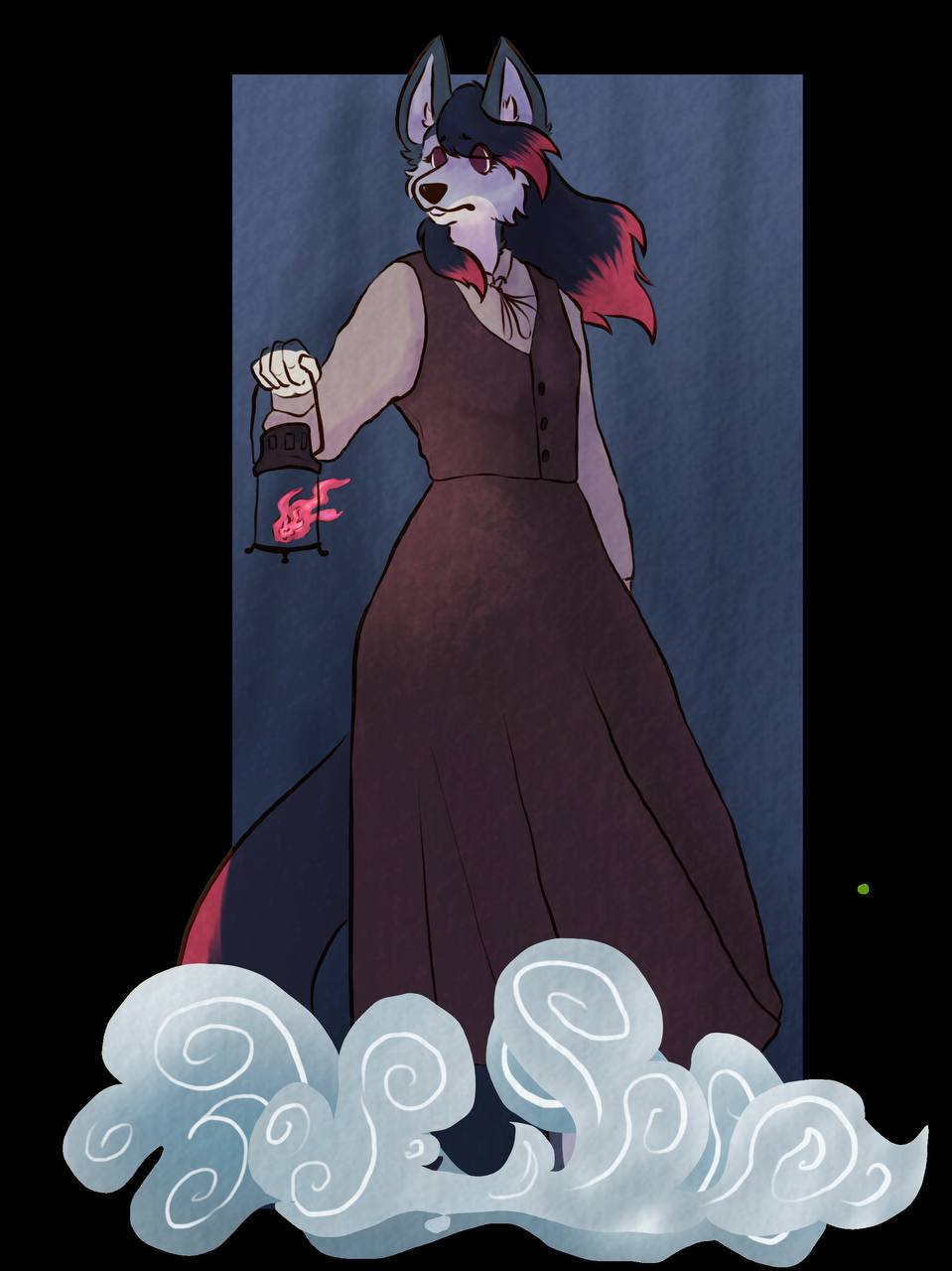 Isabella in a misty forest- using a simple lantern to lift the vale and light the way.